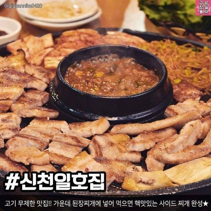 고기 무제한 맛집! 가운데 된장찌개에 넣어 먹으면 핵맛있는 사이드 찌개 완성