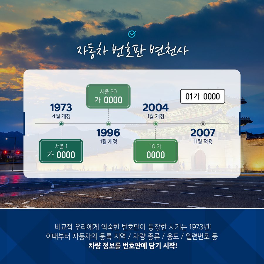 비교적 우리에게 익숙한 번호판이 등장한 시기는 1973년 입니다.