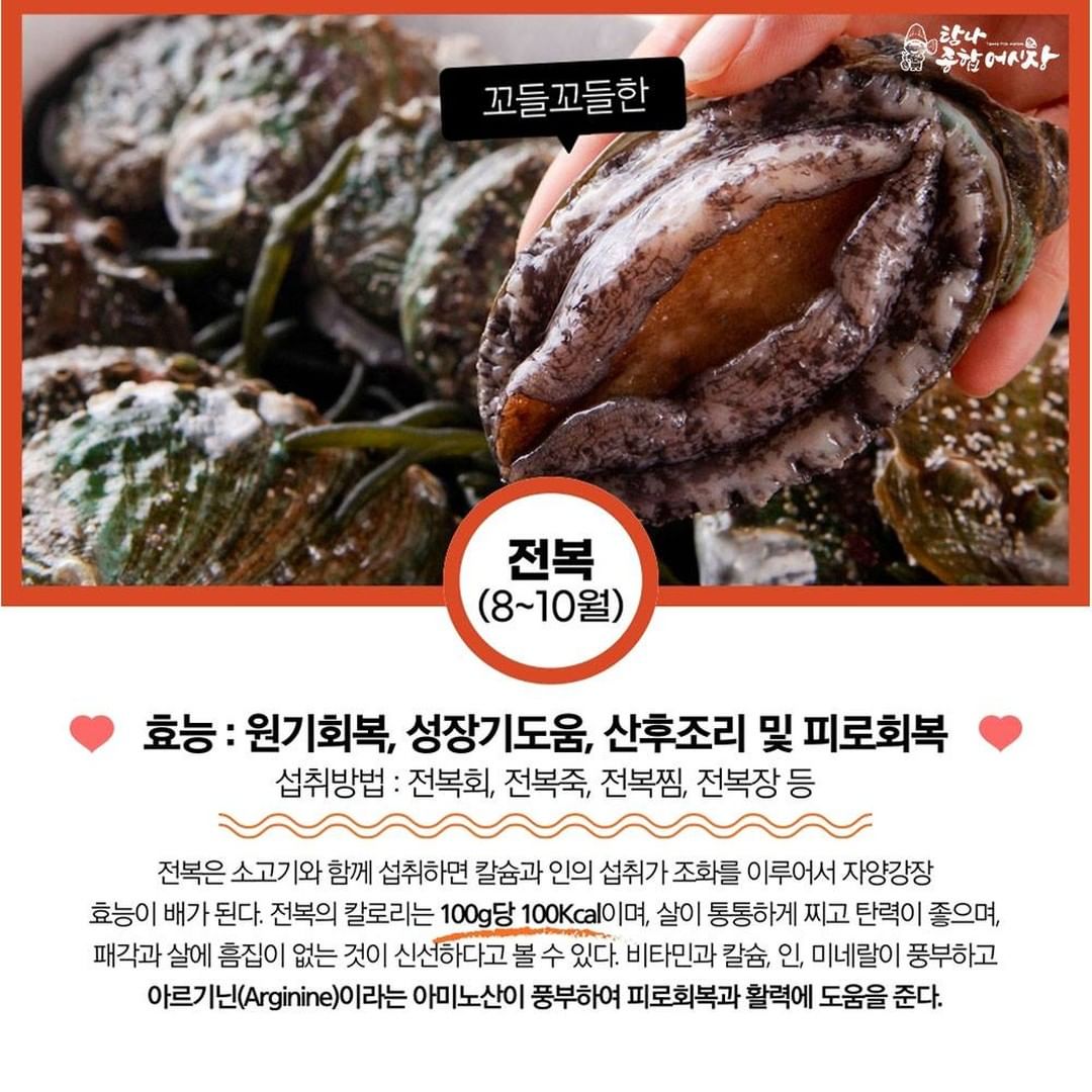 섭취방법 : 전복회, 전복죽, 전복찜, 전복장 등