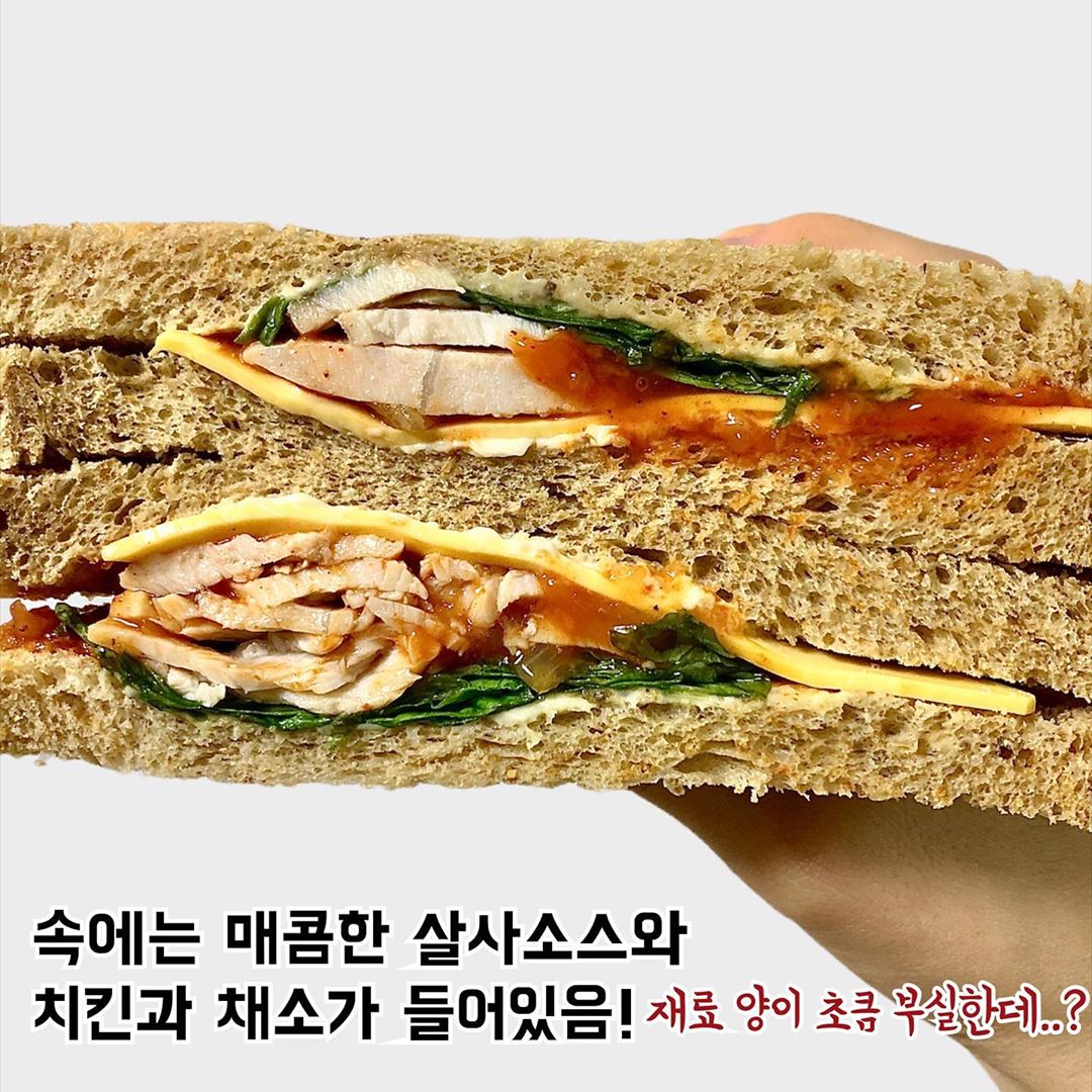통밀로 만들어진 gs25 신제품 치킨살사샌드위치 간단 먹방후기 정리