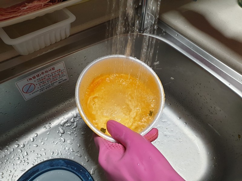 남은 국물을 버린 후 물에 헹궈주면 끝!