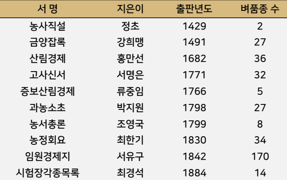 . 농가월령(고상안, 1616) : 벼재배 양식에 따른 재배 시기 및 품종 기술(24절기에 따른 재배방법 기술)