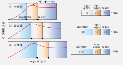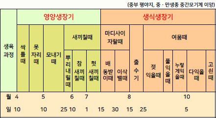 하며, 영양생장기간은 50~110일, 생식생장기간은 이삭이 자라는 기간 약