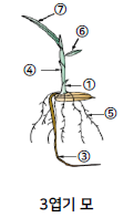 어린모 : 엽령 2.5~3.0, 중간모 : 엽령 4.5~5.0