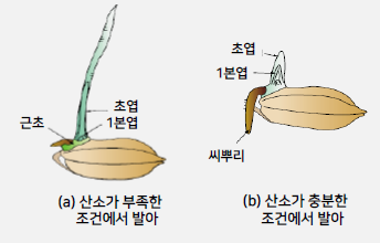 . 볍씨발아 : 적당한 수분과 온도 및 산소 필요