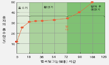 : 발아에 필요한 수분흡수 (15℃ 물탱크에 6~7일간)