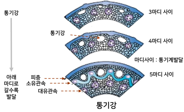 • 줄기와 뿌리의 통기강과 연결