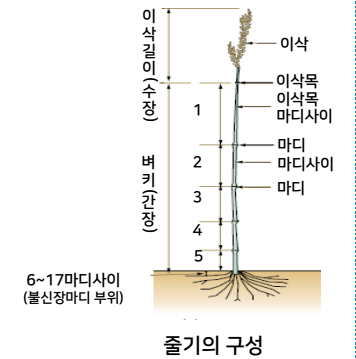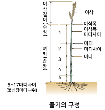 식생장기에는 쓰러짐을 방지하는 중요한 역할을 하며, 또한 이삭패기(출수)