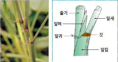 • 잎집 : 줄기보호, 광합성 산물의 일시저장