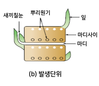 • 생식생장기 : 끝잎(지엽), 2엽