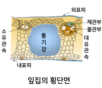 기공과 연결되어 기공에서 흡수한 산소의 이동통로