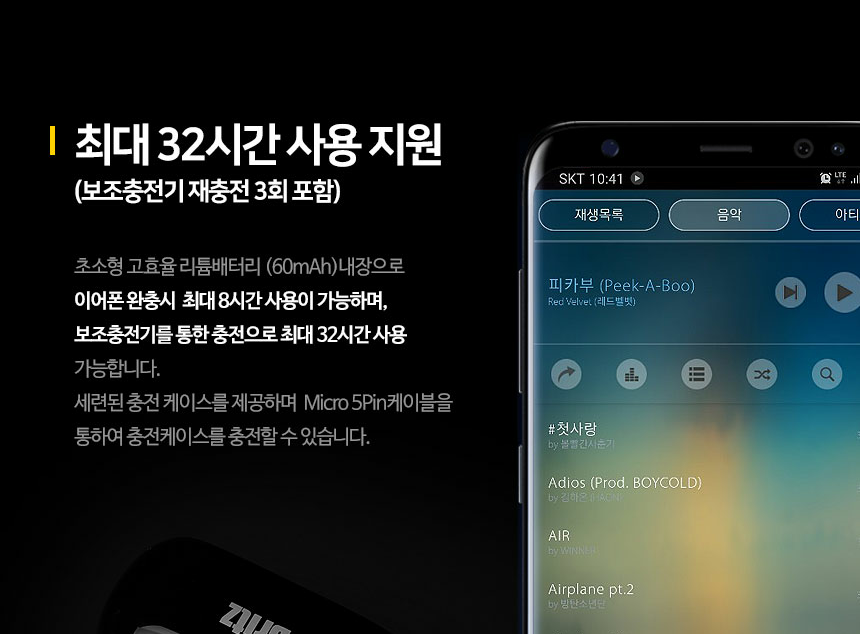 그냥 무난하게 저음,고음 나오는 정도지 QCY T1과 마찬가지로 유선을 씹어먹을 음질은 아닙니다.