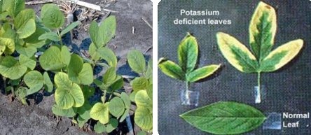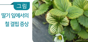 결핍증상 : 노엽의 황백화 , 잎 가장자리의 황갈색화
