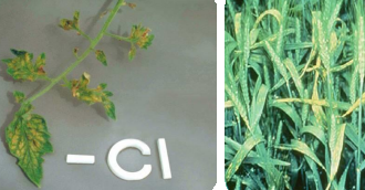 결핍증상 : C4 식물 - >C3 경로 , C4 식물 엽황화 , 괴사