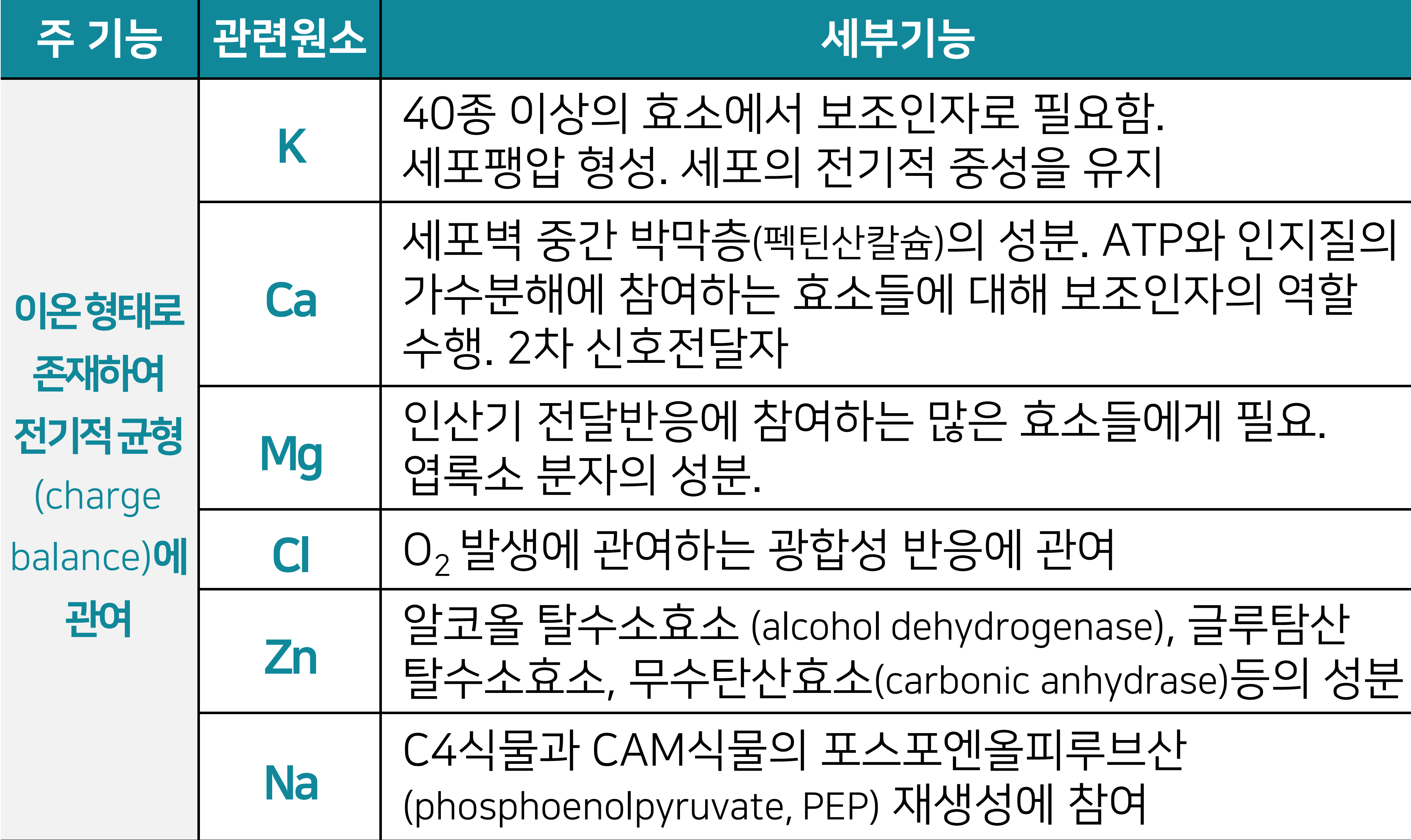 생화학적 기능에 따른 식물 무기영양소의 분류 (정리)