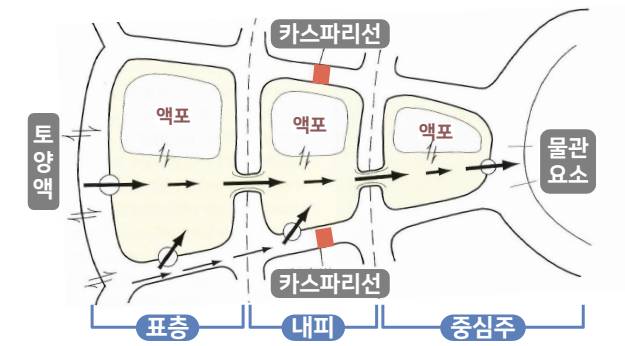 ① 무기양분의 동화능력 ② 무기양분의 동화장소 ③ 무기양분의 상승통로 ④ 양분의 선택적 투과성