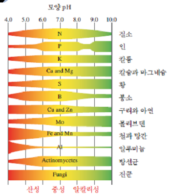 - pH 가 낮으면 주요 무기양분 결핍된다