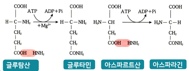 암모니아의 동화 – 아미드의 생성 (글루타민, 아스파라긴)