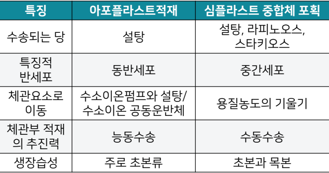• 심플라스트경로를 밟던 당이 아포플라스트를 거쳐 능동적
