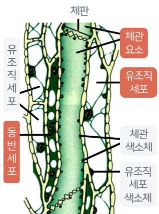 엽육세포>>유관속초세포>>체관부유조직세포>>동반세포>>체관요소