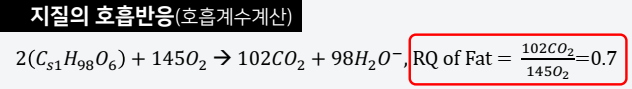 호흡계수(RQ) =발생한CO2 몰수/소비된 O2몰수