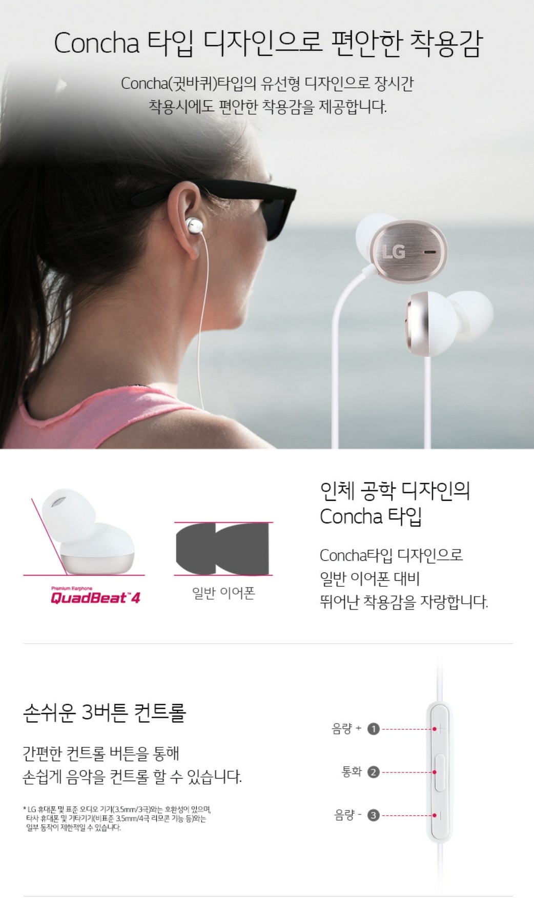 착용감 : 좋지만 Concha(귓바퀴)타입에 모양이 둥근 평면 방식이라 손으로 잡기 불편하고 귀에 꼇다 빼기가 불편한 점은 확실히 있습니다 귀차니즘에 선 잡고 뺏다 꼇다 하게 될 수 있습니다 제품 착용 위치가 디자인상 헷갈릴수 있습니다 제품 광고 사진에 나온데로 마이크버튼 있는 쪽이 왼쪽입니다 위치 바껴서도 착용인 가능 하네요
