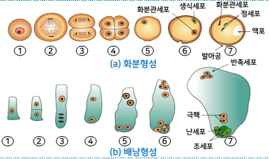 2) 화분과 배낭의 형성
