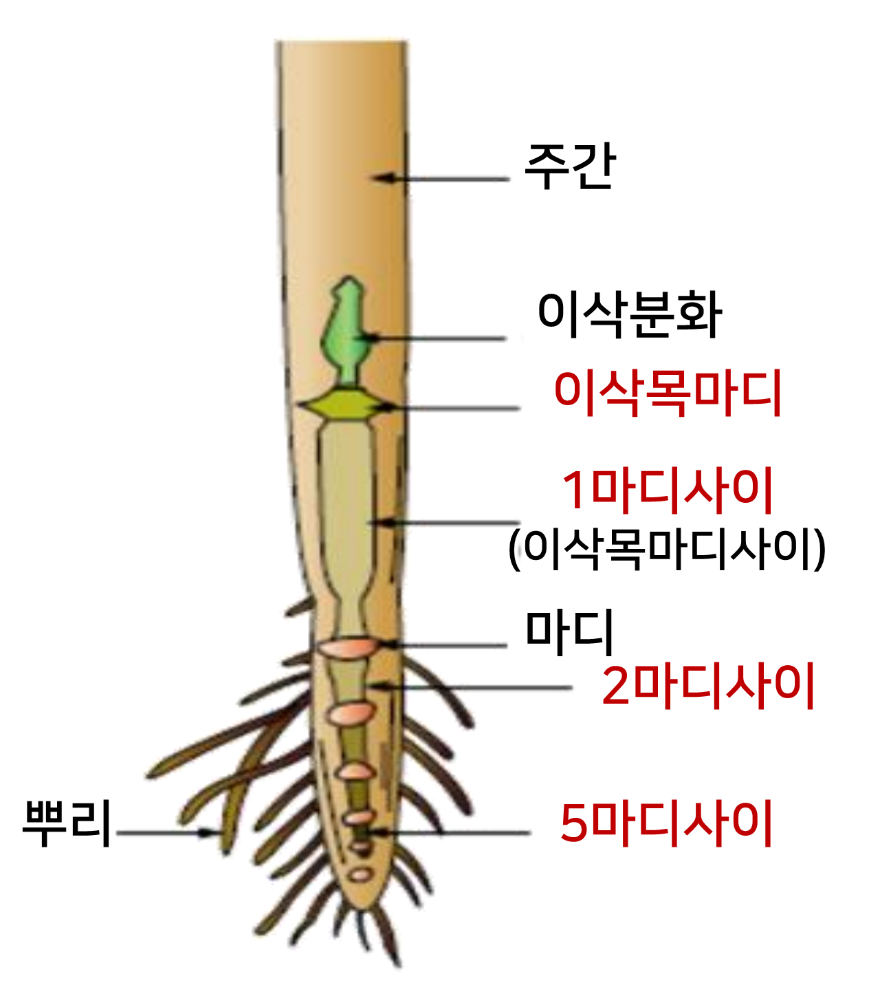 되며, 이때를 이삭생길때(유수분화기)의 기점으로 본다. (3) 주간의 상위
