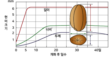 해설 : 현미는 길이, 너비, 두께의 순서로 발달하여 수정 후 25일 쯤에 크기