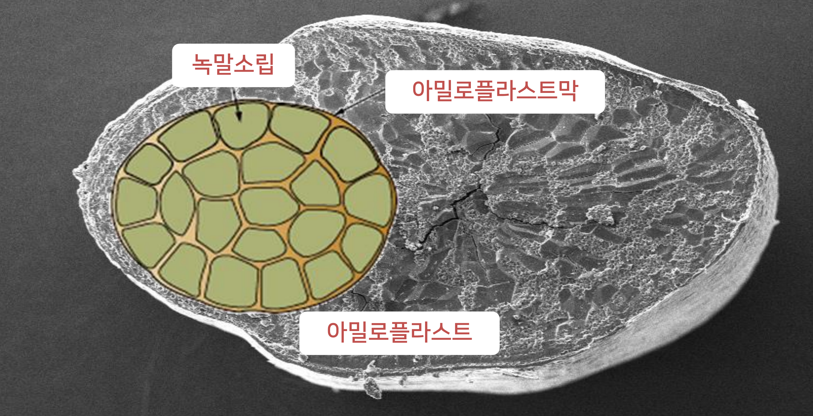 성된 녹말립은 아주 얇은 2겹의 막이 싸고 있다. 이와
