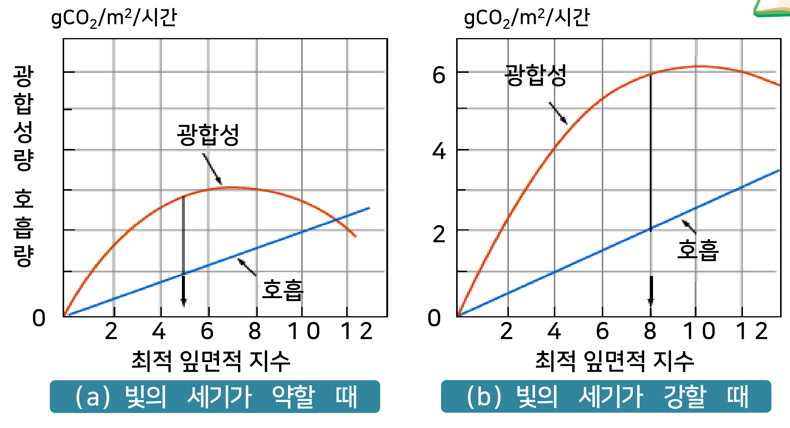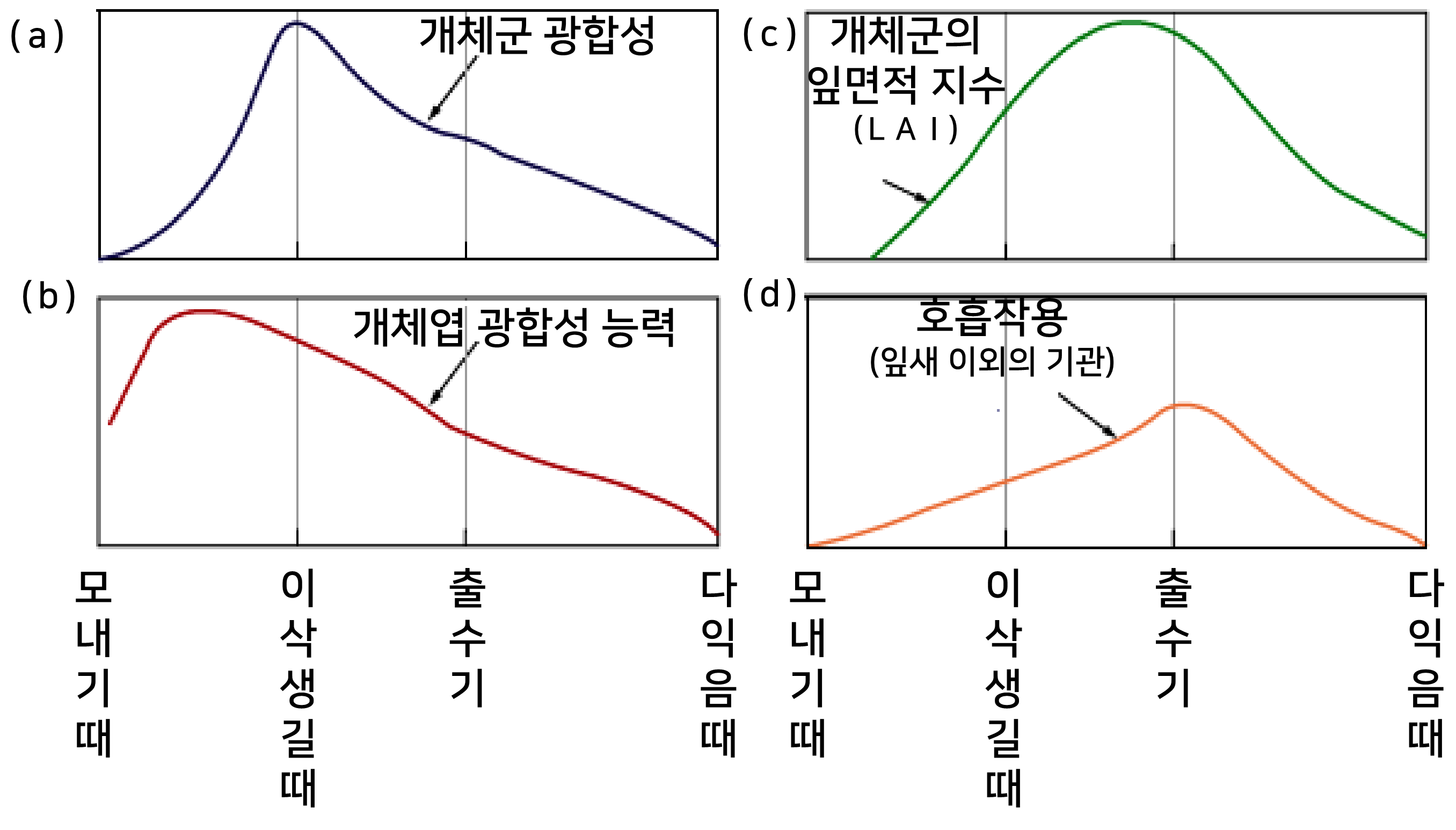 개체군 광합성 = [단위 잎면적당 광합성속도(능력) × 잎면적 지수