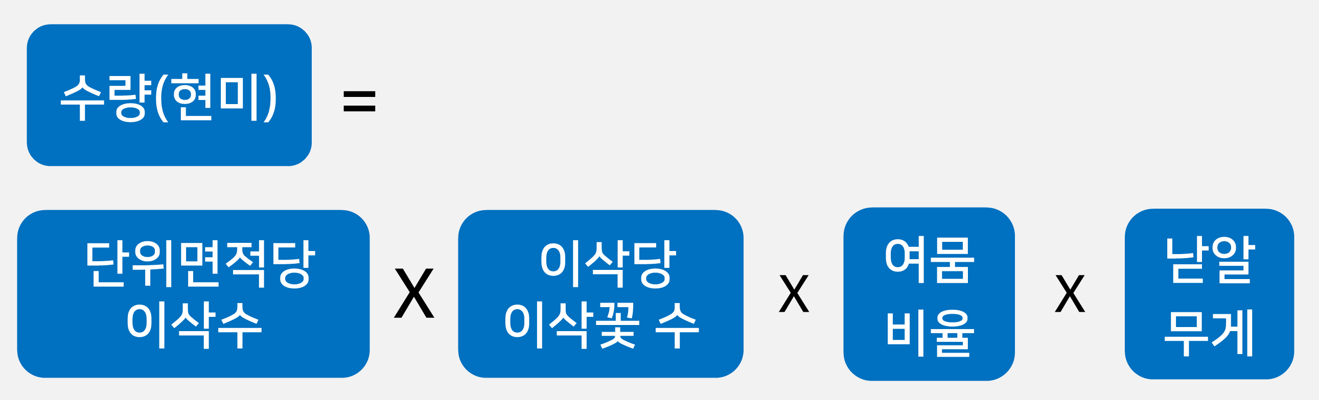 비율ㆍ낟알무게이고 수량은 이들의 곱으로 이루어진다. 벼의 수량 구성요소