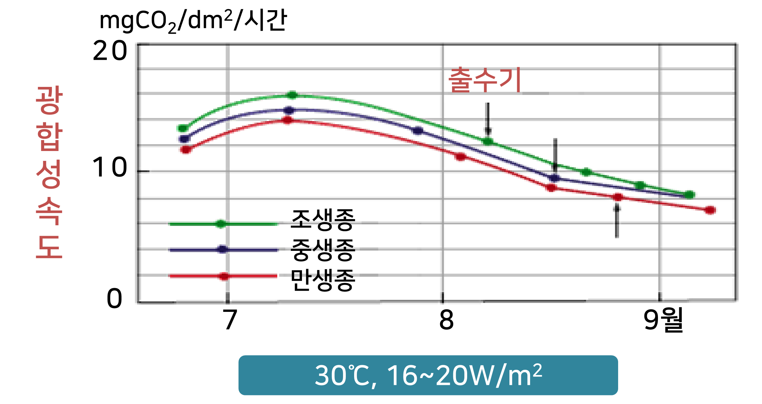 벼 광합성 적온 : 20~33℃