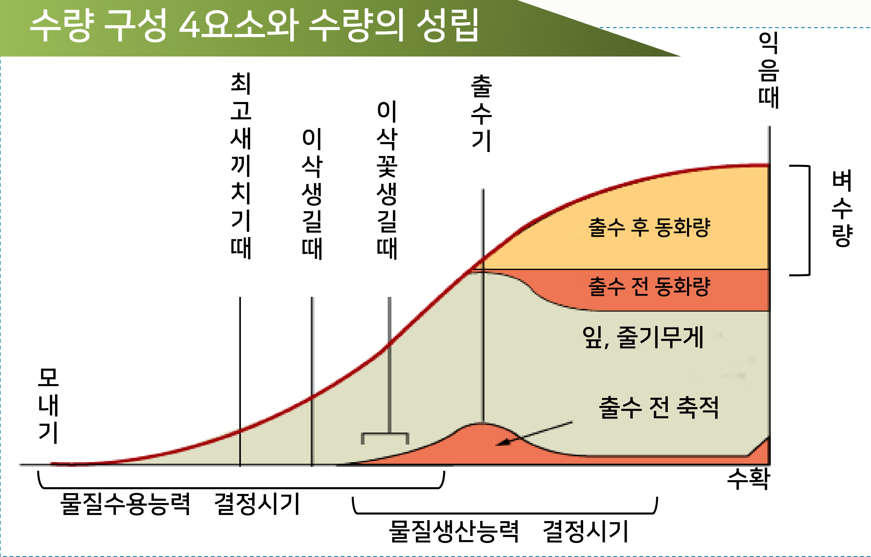 7. 벼 수량의 생산과정은 물질수용능력과 물질생산능력으로 나눌 수 있으며,