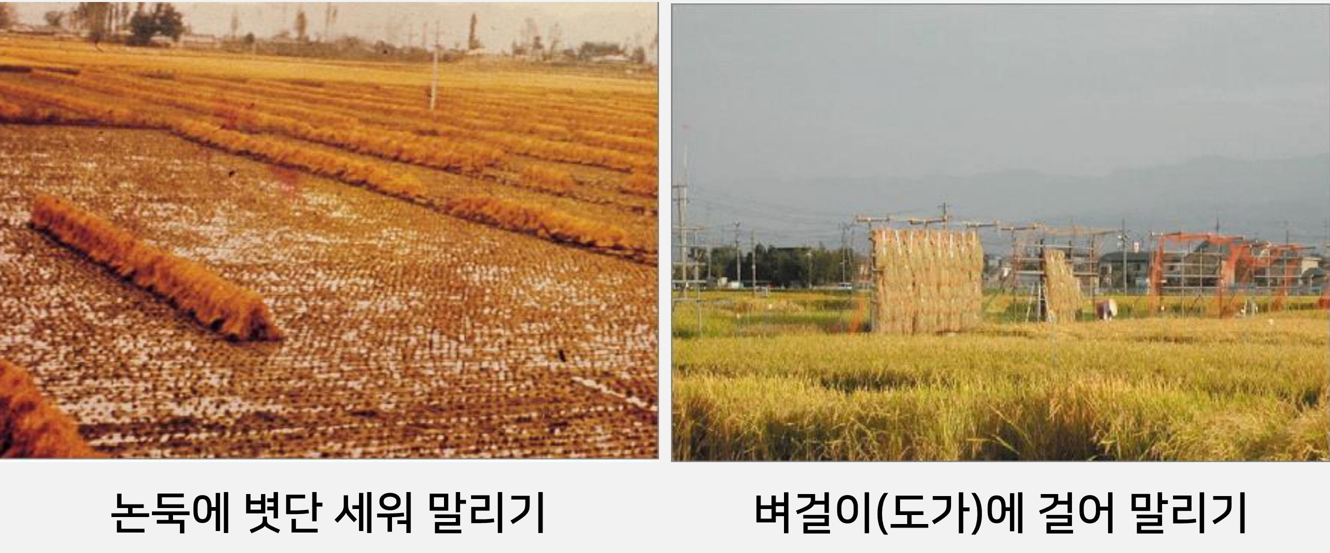 ※ 천일건조 : 알벼를 콘크리트 바닥이나, 아스팔트, 멍석 또는 망사에 넣거나 널어 건조하는 방법