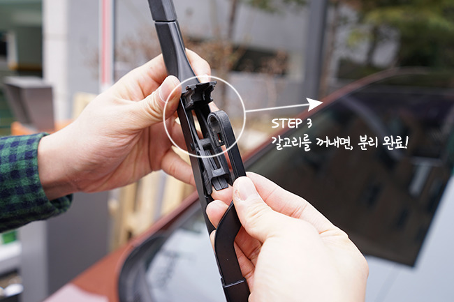 "갈고리에서 빠졌다면 와이퍼의 분리는 끝났습니다."