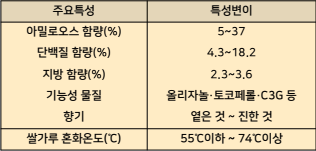 이 높을수록 찰기가 적어 우리나라 사람들의 기호에 맞지 않는다. 우리나라 사람들의 기호에 맞는 일반형 벼