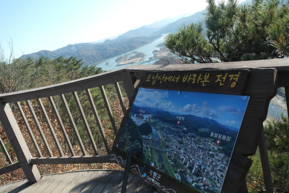 가평 시내를 한눈에 볼 수 있는 보납산! 보납산 전망대에서는 자라섬도 볼 수 있는데요. 자라섬과 보납산의 인연은 아주 깊다고 합니다. 보납산 남쪽 끝자락에 또 하나의 작은 석봉(141)이 솟아 있습니다. 이 석봉으로 보납산은 자라 형태를 띠며 그 끝자락을 자라목이라 부른다고 하는데요, 자라섬은 보납산 자라목에서 보이는 북한강 내 섬이라 하여 자라섬이라 부르게 되었다고 합니다.