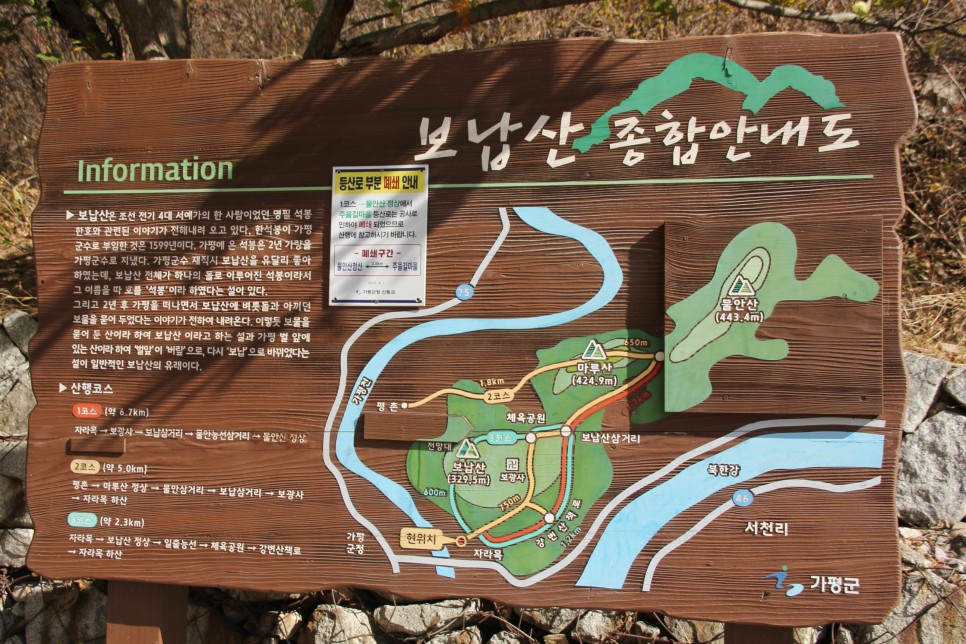 코로나로 인해 멀리가기는 힘들지만 적당한 거리를 유지하면 힐링하기 좋고 울긋불긋 단풍과 고즈넉한 풍경으로 여느 때보다 산행하기 좋은 가평 보납산 요즘 등산을 계획하며 이름난 산들을 떠올리곤 합니다. 경기도 가평에는 가평의 남산으로 불리며 가평의 풍경을 한 폭의 그림처럼 담고 있는 산이 있습니다. 바로 ‘보납산’입니다.