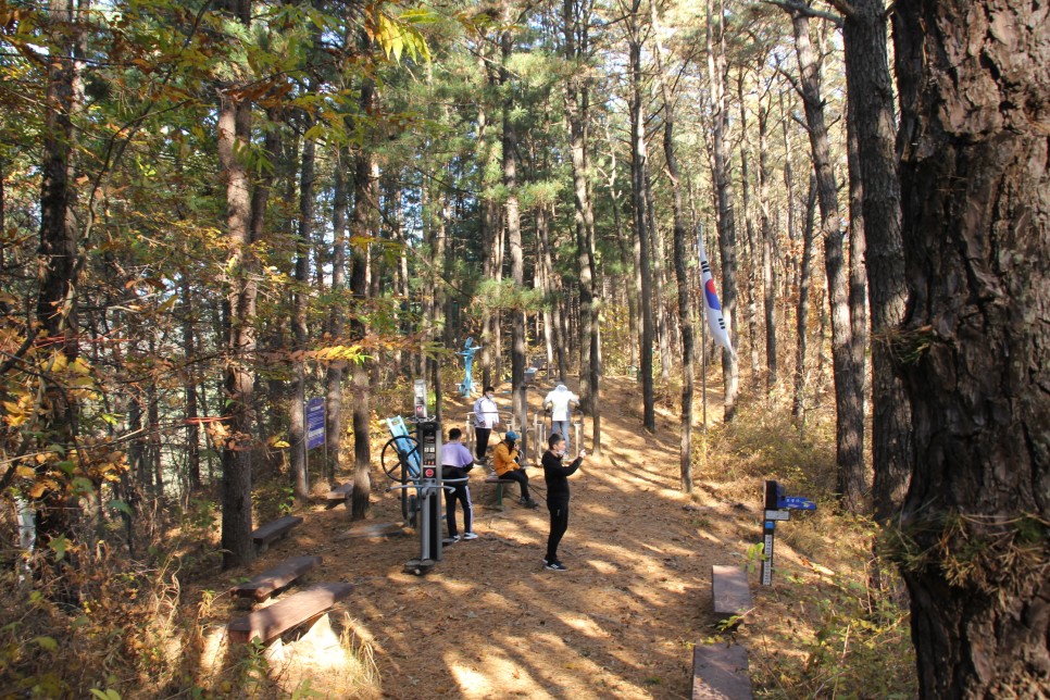 평일 오후 한적한 보납산에 한 무리의 사람들이 오르는 모습도 보였는데요. 이처럼 보납산은 지역 주민들이 자주 찾는 산으로 중턱에는 마을 주민들이 이용할 수 있는 체육시설도 자리하고 있습니다.