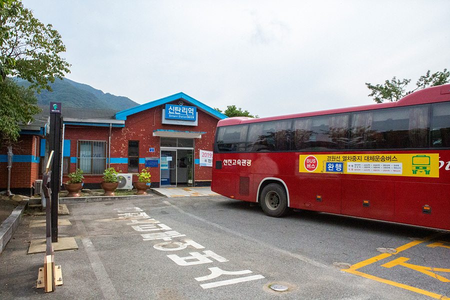 귀가할 때는 연천 신탄리역에서 버스를 이용하여 돌아가시는 것이 가장 좋은데요, 보시다시피 종점 부근이라 버스가 많이 정차해 있는 것을 보실 수 있습니다. 그러나 인적이 많지 않은 곳이다 보니 배차 간격이 짧지 않아 운행 시간은 꼭 체크해야 합니다.