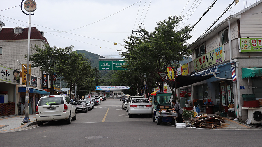 대광리역을 향해 가는 길은 한적한 시골 시내의 모습이 이어집니다. 자동차의 통행이 드물긴 하나 늘 차로 와 도보 동선이 겹치는 곳은 앞뒤를 주의하며 걷습니다.