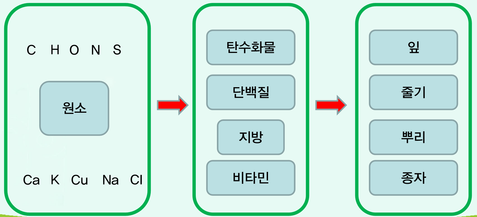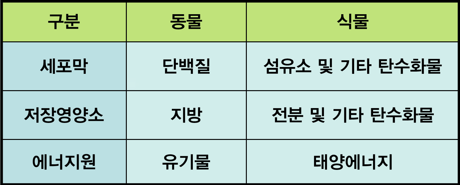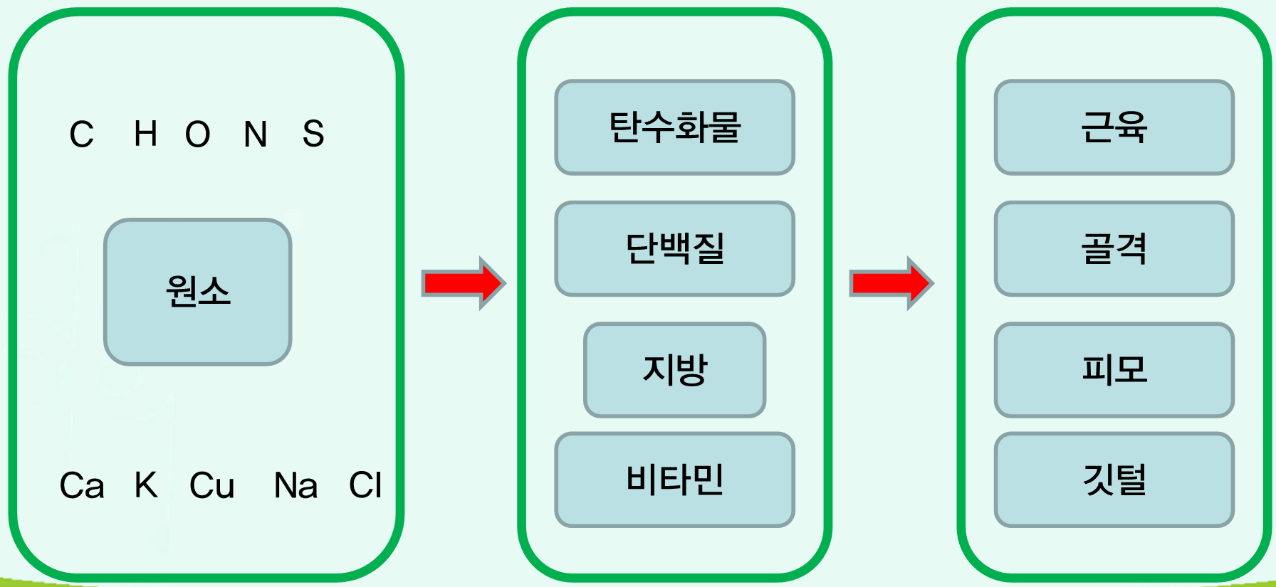 ▪ 동물이나 식물의 조직은 공히 탄소, 수소, 산소, 질소, 황과 기타의 광물질로 구성