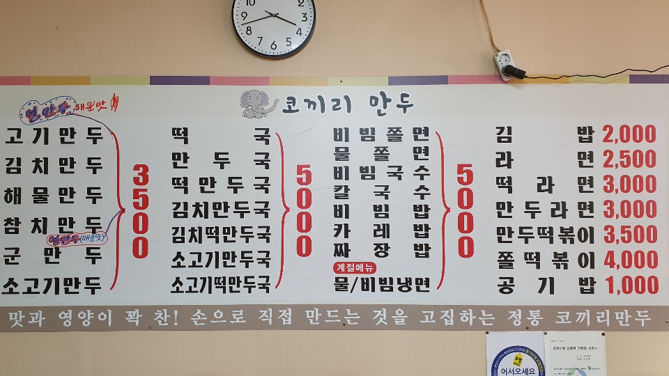 만두 이외에도 쫄면, 김밥, 떡국, 만둣국 등을 판매하고 있으며 모든 음식이 저렴한 것은 물론 맛도 좋다고 합니다.