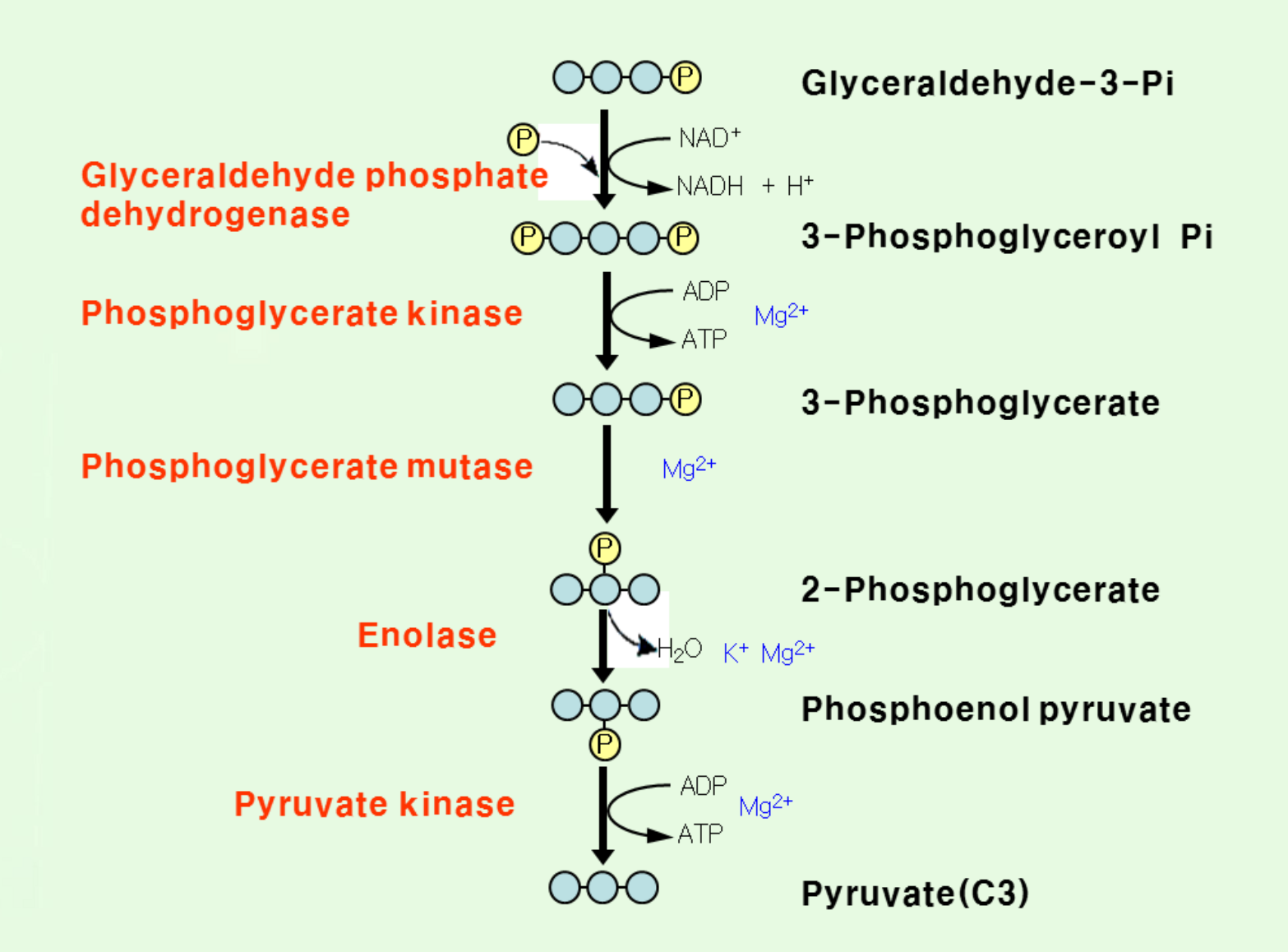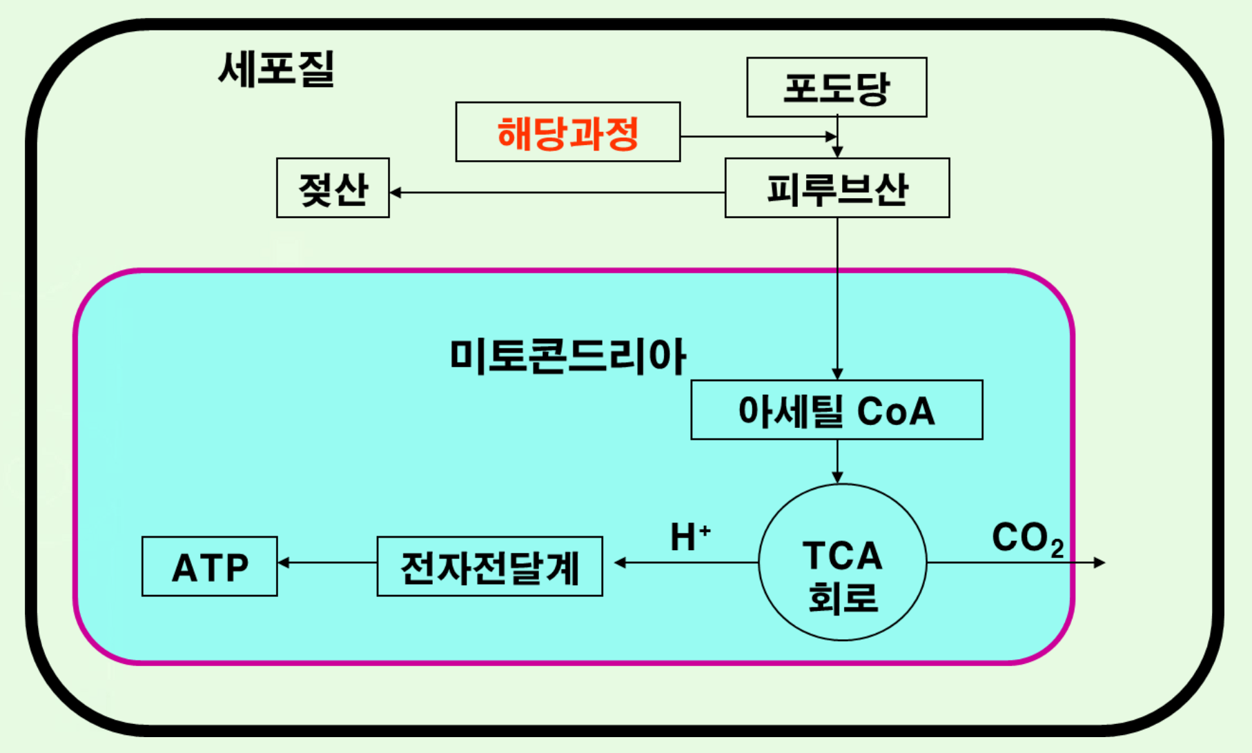 화물은 세포질에서 다단계의 화학반응인 해당과정을 통하여 삼탄당의 피루브산