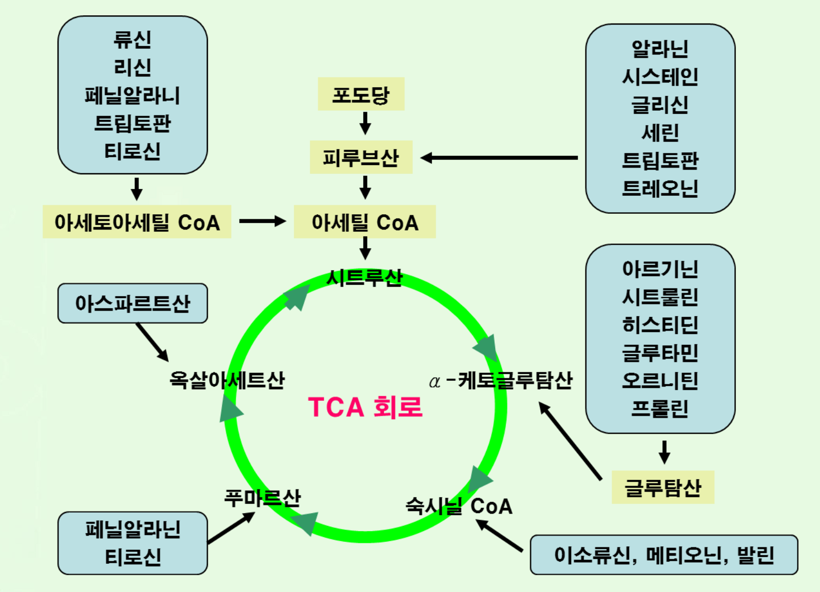 다. 단백질의 소화산물인 아미노산은 구성하고 있는 탄소골격에 따라 에너지의 생