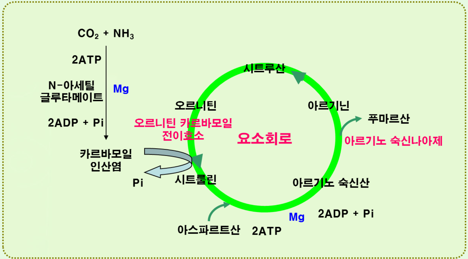 을 이용하는 요소회로를 통하여 요소의 형태로 체외로 배설된다.