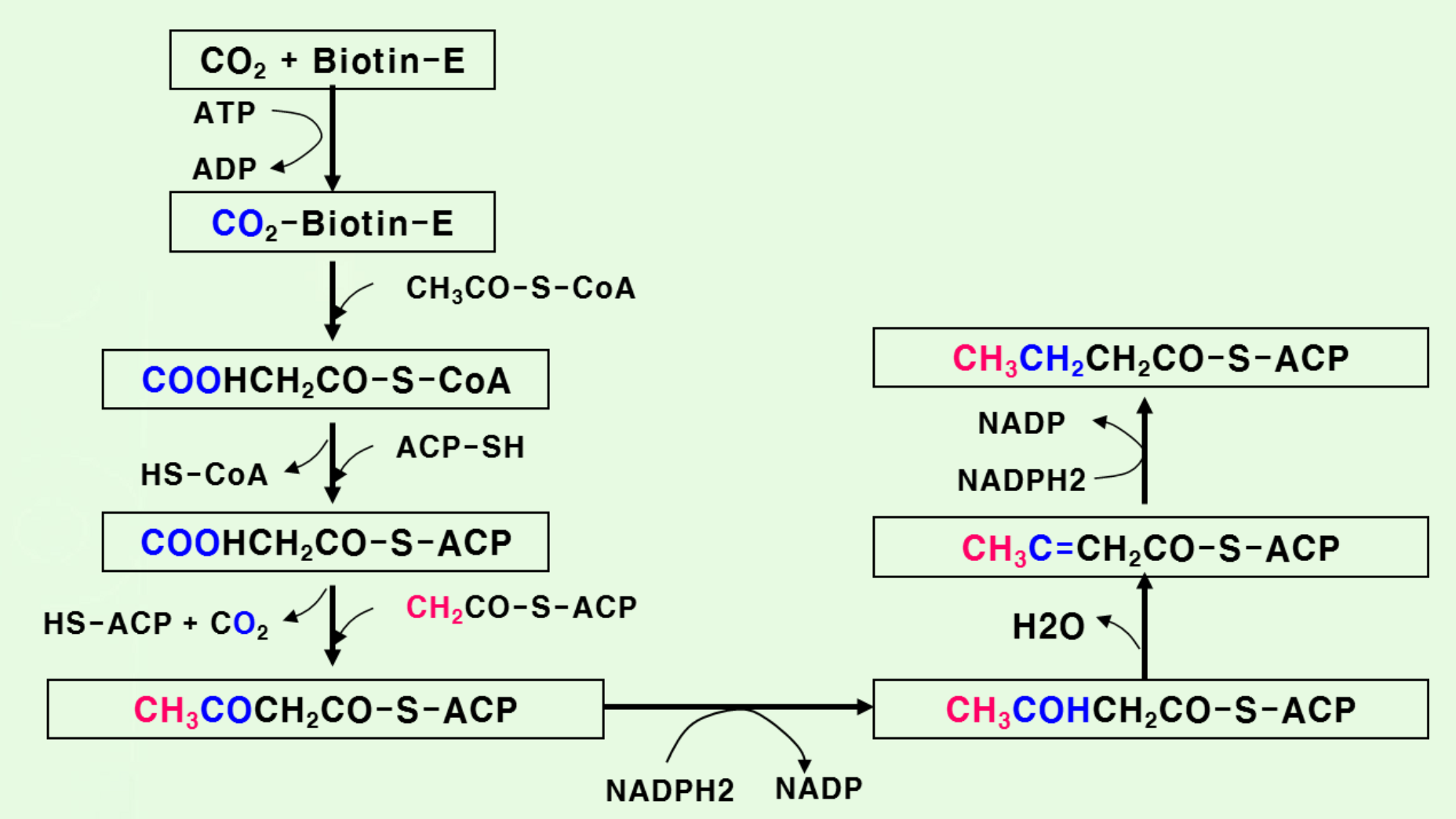 아실 CoA-S-에스테르: 지방산 합성 억젗
