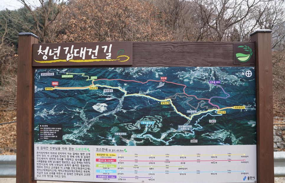 성지 밖 도로 버스정류장으로 나오면 ‘청년 김대건 길’을 안내하는 순례길 안내도가 있습니다.