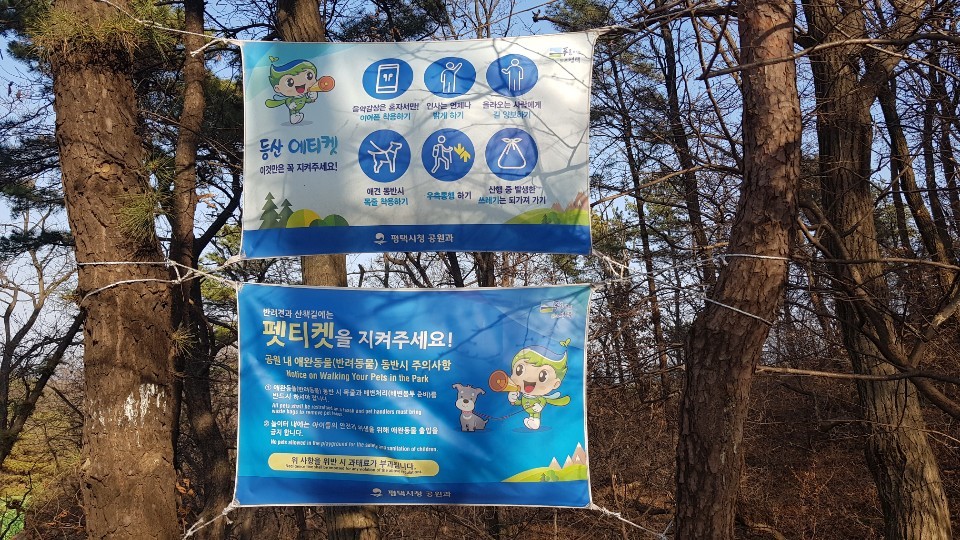 부락산 둘레길 2코스 숲속 길을 산책할 때는 펫티켓을 지켜야 할 것 같습니다.